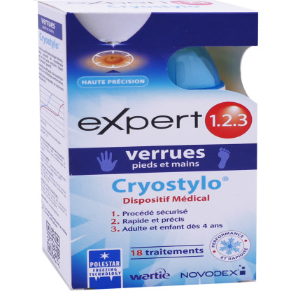 NOVODEX Expert 1.2.3 Verrues Cryostylo élimine efficacement les verrues des mains et des pieds par la cryothérapie et sa technologie Polestar inspirée de la méthode utilisée par les professionnels de santé, en gelant la verrue au cœur de la racine. Après une seule application, la verrue de détache en 10 à 14 jours laissant place à une peau saine. Pratique par son format en stylo, son embout métallique arrondi permet une précision optimale pour traiter la verrue sans abîmer les tissus sains autour de la zone à traiter.