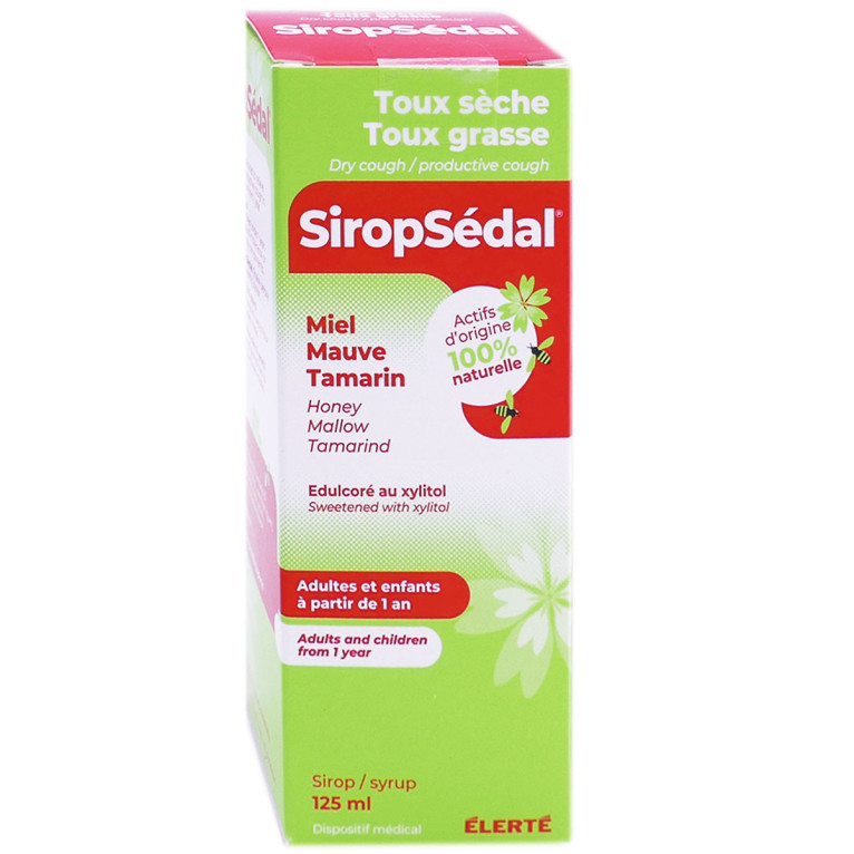 SiropSédal Sirop Toux sèche Toux grasse discount du laboratoire Elerté, un dispositif médical indiqué pour soulager la toux sèche ou grasse dans votre parapharmacie en ligne à prix discount. A partir de 1 an.