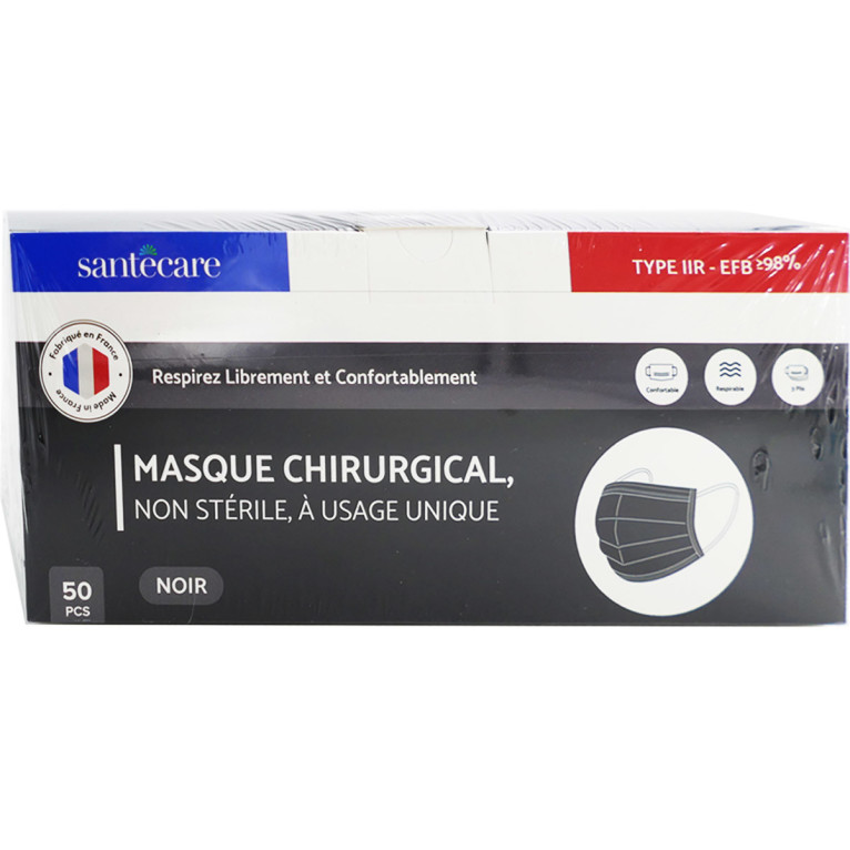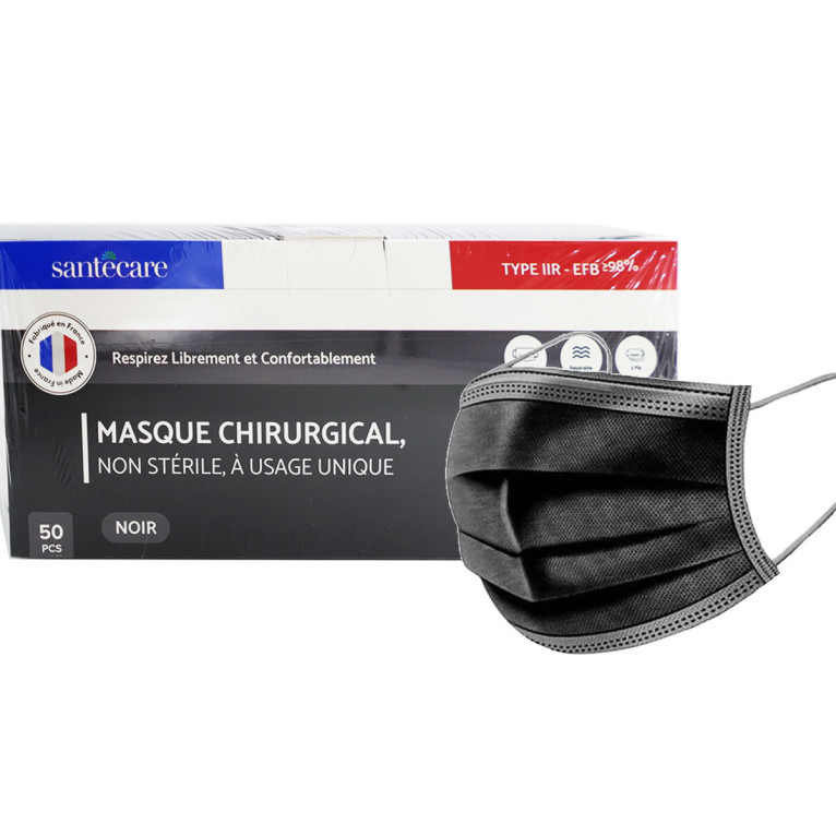 MASQUE CHIRURGICAL TYPE IIR NORME EN 14683 X50 NOIR 10 MAX/COMMANDE
