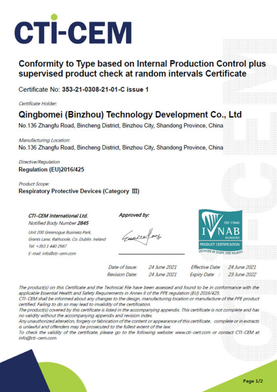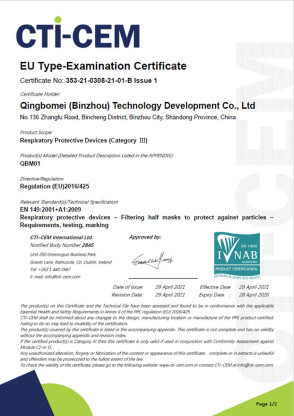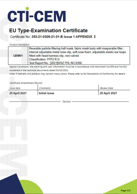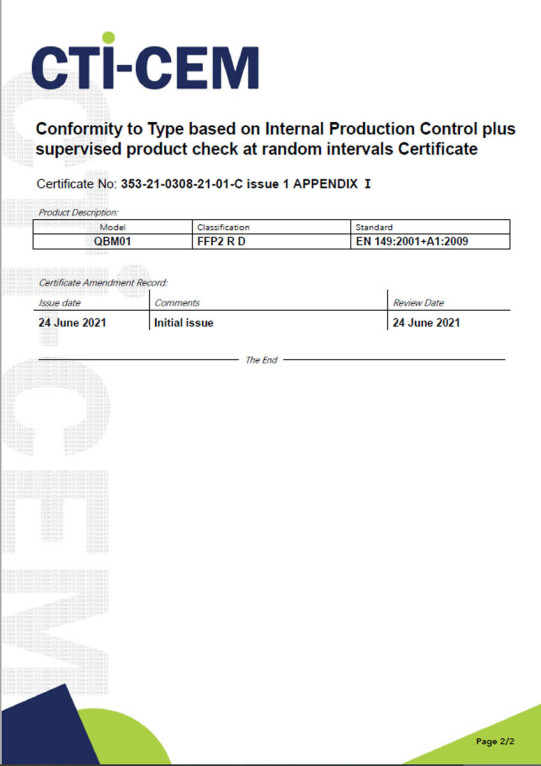 Ce masque est certifié FFP2 RD selon la norme « EN 149:2001+A1:2009 » (marquage CE2845). Cf certificats ci-contre.
