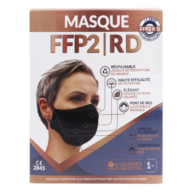 Selon les certifications et tests effectués : Masque FFP2 RD (Equipement de Protection Individuelle Réutilisable)