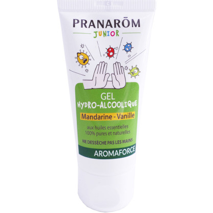 Le laboratoire Pranarom est spécialisé dans les produits à base d'huiles essentielles et propose une gamme adaptée aux besoins des enfants. Le gel hydroalcoolique Aromaforce Junior est formulé à base d'huiles essentielles 100% pures et naturelles. Il offre une odeur agréable de mandarine et de vanille et une action apaisante sur la peau. Sa formule douce et non desséchante permet une utilisation régulière sans agresser la peau fragile des enfants.
