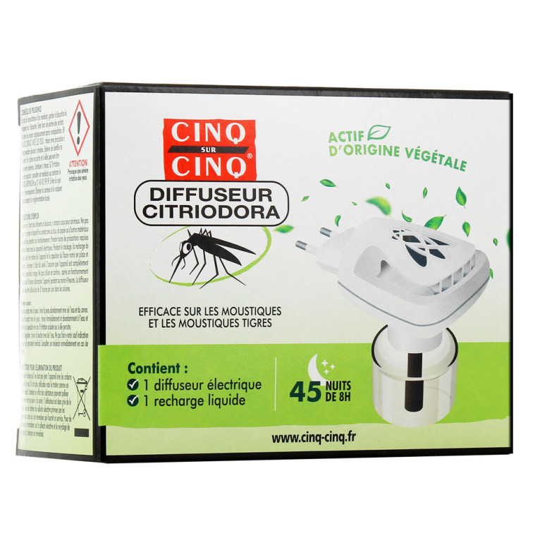 Le diffuseur Citriodora de Cinq sur Cinq en vente en ligne sur le site de votre parapharmacie à prix discount est la solution idéale pour éloigner les moustiques de votre maison.