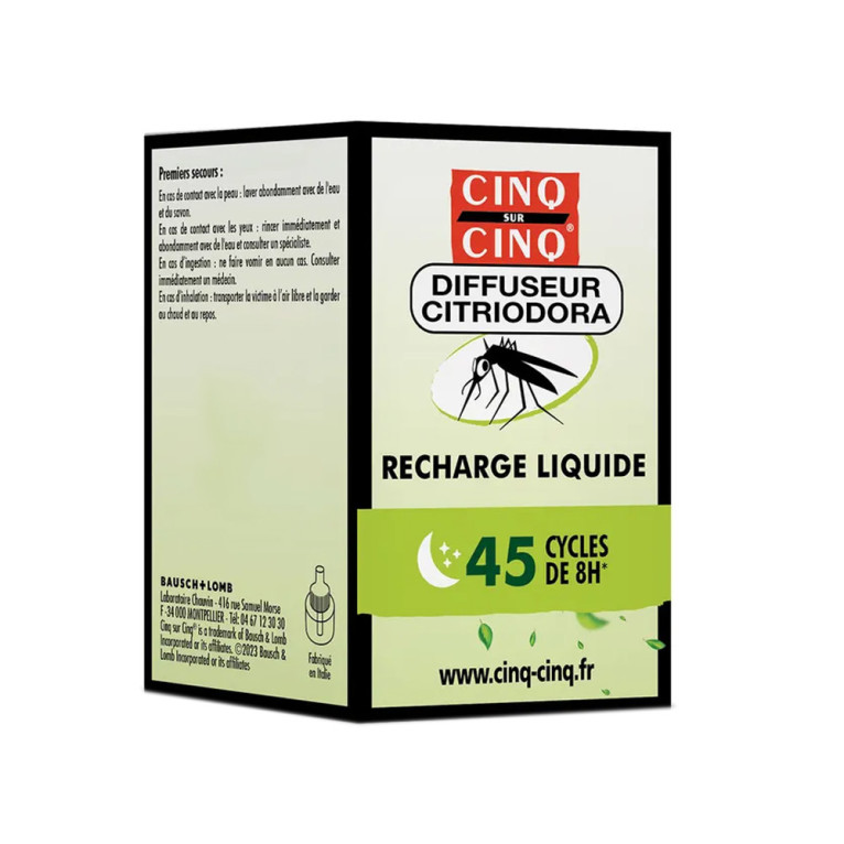 Protégez votre maison des moustiques avec la recharge liquide pour le diffuseur Citriodora de Cinq sur Cinq en vente en ligne sur le site de votre parapharmacie à prix discount.