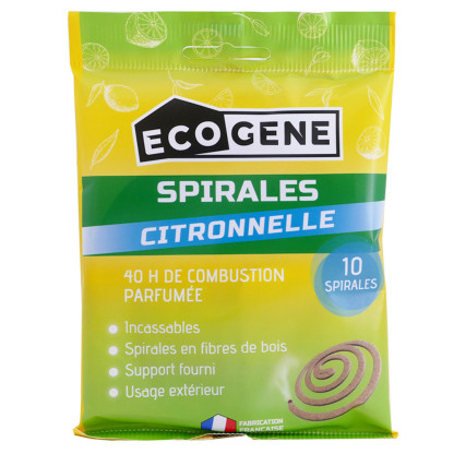 Les spirales à la citronnelle EcoGene sont fabriquées par le laboratoire EcoGene, spécialisé dans les produits naturels pour le bien-être.