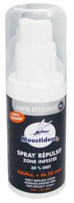 Depuis plus d’un siècle, Les laboratoires GILBERT développent un large choix de produits destiné à la santé et au bien-être de la famille, avec un souci constant d’innovation, de qualité, d’efficacité et de sécurité au meilleur prix pour tous. MOUSTIDOSE lotion répulsive zones infestées des laboratoires GILBERT, est spécialement conçue pour éloigner les moustiques pendant 6 heures et les protéger de leurs piqûres. Composé d’un actif à l’efficacité redoutable le DEET dosé à 30%, ce répulsif agit contre les moustiques vecteurs du paludisme, de la dengue de la fièvre jaune ou du chikungunya en zones tropicales infestées. Ne pas utiliser chez l’enfant de moins de 30 mois.