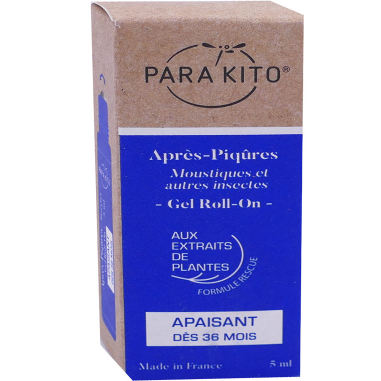 Le laboratoire PARAKITO conçoit des produits anti-moustiques (bracelets, clip, roll-on) à base d’ingrédients naturels rigoureusement sélectionnés et contrôlés. Le roll-on Après-piqûres sous forme de gel à base d’huiles essentielles et extraits de plantes (Bois de Cade, Cèdre de l'Himalaya, Virola, Extraits naturels d'Aloe Vera, de Calendula, d'Avoine) et de Menthol, vont soulager immédiatement la douleur et éviter le grattage tout en laissant une sensation fraîche sur la peau. Rapidement, les douleurs s’estompent pour retrouver du confort. Hypoallergénique. Sans paraben. Testé dermatologiquement.