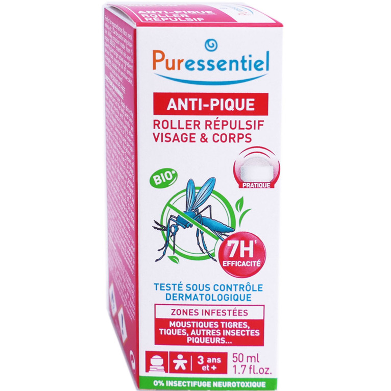 Anti-pique Roller Visage & Corps de PURESSENTIEL à prix discount, la solution naturelle Bio et rapide dans votre parapharmacie en ligne pour éloigner les insectes piqueurs (moustiques, phlébotomes, tiques…) dans les zones infestées adapté à toute la famille (à partir de 3 ans) Tous types de peaux même sensibles