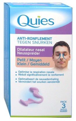 Anti ronflement Dilatateur nasal de QUIES, un petit accessoire qui résoudra dès la première utilisation les ronflements du sommeil. Taille Petit/moyen