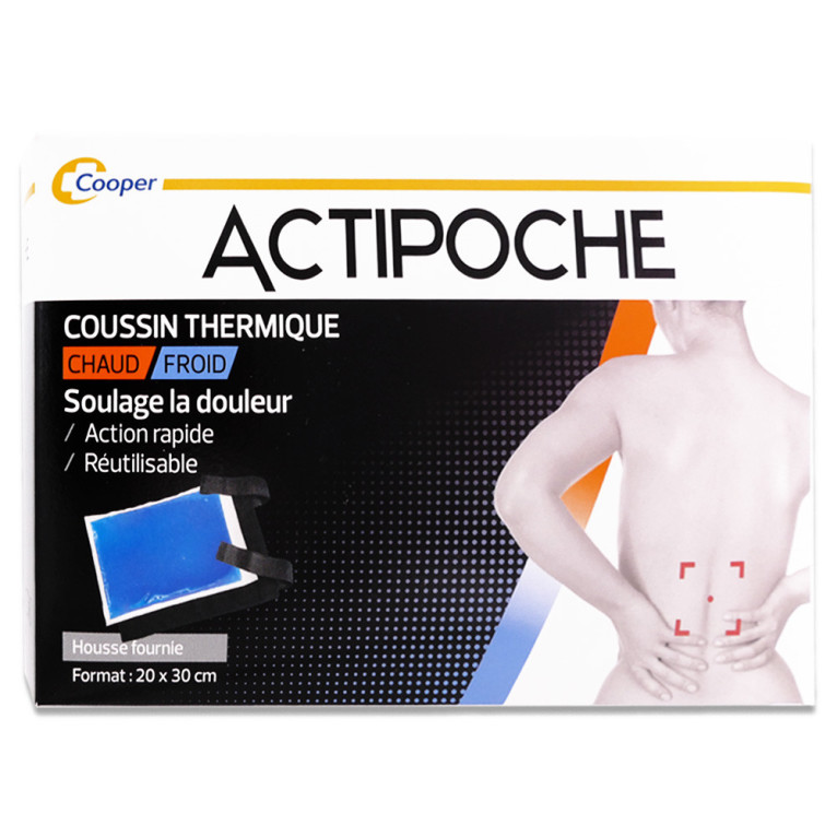 Avant toute utilisation, il est recommandé de lire attentivement la notice d’utilisation ou de se référer aux informations présentes sur l’emballage afin de connaître les précautions d’emploi et les instructions. Utiliser le coussin thermique ACTIPOCHE en le chauffant ou en le refroidissant selon les besoins. Ne pas dépasser 30 minutes d'application. Consulter un professionnel de santé en cas de doute.