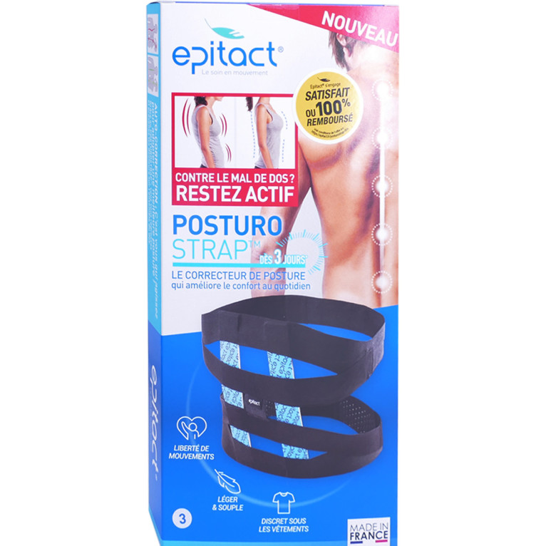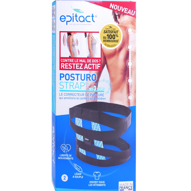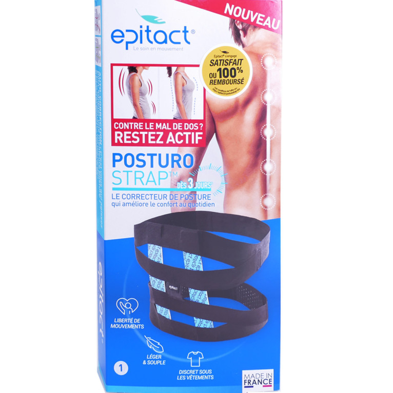 POSTUROSTRAP discount d’EPITACT, le correcteur de posture confortable et discret pour homme ou pour femme dans votre parapharmacie en ligne à prix discount, qui soulage naturellement et pour longtemps les douleurs de mal de dos, et prévient les lombalgies. Tailles au choix
