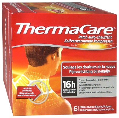Les patchs chauffants soulagent les muscles et articulations douloureuses de la nuque, de l'épaule ou du poignet naturellement par la chaleur qui est produite par les alvéoles brevetées du patch pendant 16 heures. Au contact de la peau ces alvéoles libèrent des agents thermoactifs à l'air et produisent de la chaleur (40°C en 30 minutes). Pendant 8 heures la chaleur se diffuse et le soulagement continu même après avoir retiré le patch pendant 8 heures. Rapidement les douleurs s'estompent pour reprendre un quotidien normal. Inodores et fins, ils sont invisibles sous les vêtements et ne gênent pas lors de mouvements.