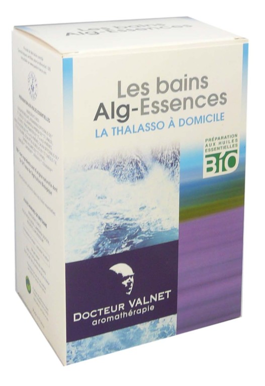 Le laboratoire DOCTEUR VALNET conçoit des produits d’aromathérapie à base d’huiles essentielles bio. Alg-Essences du DOCTEUR VALNET à base d’algues marines, récoltées en Bretagne dans les hautes mers et séchées naturellement conditionnées dans des sachets, et d’huiles essentielles bio de romarin, lavandin, térébenthine, pin, sauge, eucalyptus globulus et thym conditionné dans des petits flacons. Alg-Essences est apprécié en complément de régime amincissant et est conseillé en programme de 6 à 12 bains à raison de 3 bains par semaine.