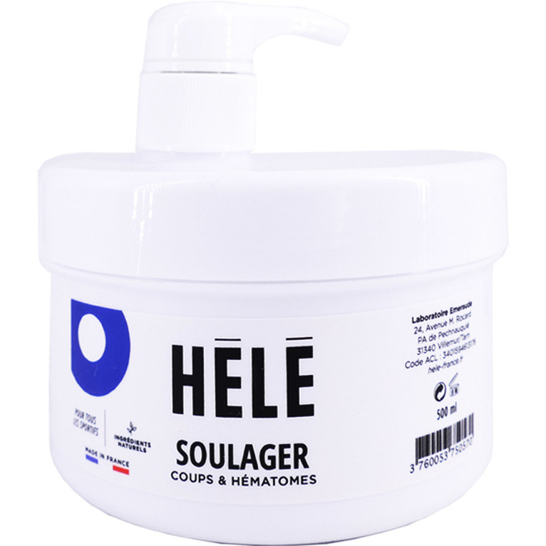 HELE SOULAGER Coups et Hématomes est un gel spécialement formulé pour contribuer à l’apaisement des douleurs lors de coups, bosses, hématomes en association avec les bienfaits d’une application par massage. Sa formule unique est composée de silicium organique naturellement présent dans l’organisme, de l’arnica qui soulage rapidement la douleur en décongestionnant les tissus, de l’harpagophytum qui favorise la récupération et atténue la douleur, des huiles essentielles de gaulthérie, hélichryse et marjolaine qui ont la propriété de diffuser une chaleur douce au contact avec la peau et offrent un soulagement immédiat en activant la microcirculation pour une meilleure cicatrisation. HELE SOULAGER Coups et Hématomes sera apprécié en prévention des bleus et ecchymoses.