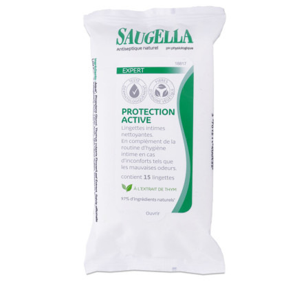 SAUGELLA PROTECTION ACTIVE 15 LINGETTES INTIMES NETTOYANTES est disponible en vente en ligne à prix discount sur Pharmashopdiscount.