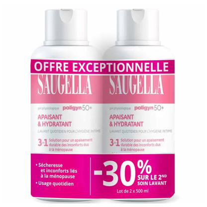 SAUGELLA SOIN INTIME LAVANT APAISANT & HYDRATANT LOT DE 2X500ML est en vente en ligne sur le site de votre parapharmacie à prix discount, conçu pour l'hygiène intime quotidienne des peaux sensibles.