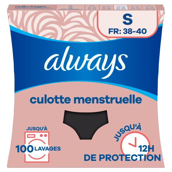 ALWAYS CULOTTE MENSTRUELLE FLUX MOYEN À ABONDANT TAILLE S 38-40 en vente en ligne, sur le site de votre parapharmacie à prix discount.