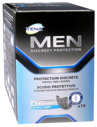 La marque TENA est composée de produits d’hygiène et de sous-vêtements pour hommes et femmes pour pallier aux problèmes d’incontinence urinaire jour et nuit. Plus absorbantes, plus sûres et plus confortables, les protections discrètes extra-light pour hommes ne laissent pas d’odeur désagréable grâce à leur système « Odour control ». Son coussin en polymères permet d’absorber rapidement l’urine pour une protection maximale. Leurs formes et leurs barrières latérales douces sont adaptées à la forme anatomique de l’homme pour un confort maximal et un bon maintien tout en discrétion. Extra fines, les protections discrètes permettent d’être portées dans les sous-vêtements en toute discrétion. Emballées individuellement, elles permettent d’être transportées partout avec soi en toute discrétion.