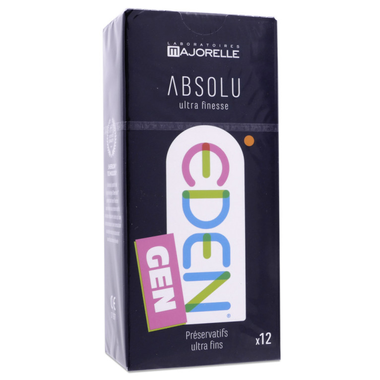 EDEN GEN 12 PRÉSERVATIFS ABSOLU ULTRA FINS, la solution idéale pour des moments intimes en toute légèreté, est en vente en ligne sur le site de votre parapharmacie à prix discount.