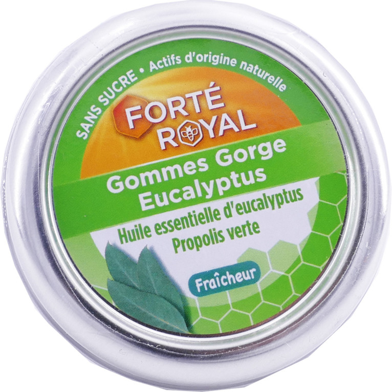 Depuis 1999, les Laboratoires FORTÉ PHARMA développent des compléments alimentaires efficaces et innovants, aux formules issues de la recherche en nutrition cellulaire, pour contribuer aux ressources des utilisateurs.L’univers Santé de FORTÉ PHARMA propose des produits conçus pour préserver le capital santé et se sentir bien au quotidien.Les laboratoires Forté Pharma proposent Forté Royal Gommes Eucalyptus. Sa formule combine l’huile essentielle d'Eucalyptus qui aider à soulager la gorge en cas d’irritation; de la Propolis Verte, véritable bouclier naturel de la ruche, et de l'Échinacée qui contribue au fonctionnement normal du système immunitaire. Le Menthol complète cette formule pour une sensation de fraicheur.