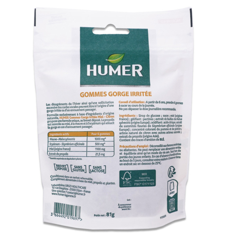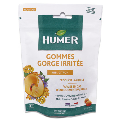 HUMER GOMMES GORGE IRRITEE MIEL-CITRON 30 GOMMES est disponible en vente en ligne à prix discount sur Pharmashopdiscount.
