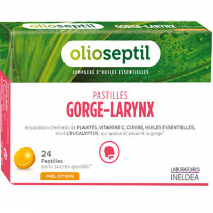 OLIOSEPTIL GORGE-LARYNX goût miel citron du laboratoire INELDEA à prix discount, en vente dans votre parapharmacie en ligne discount, une association d’extraits de plantes, vitamine C, cuivre et huiles essentielles à base d’Eucalyptus qui apaise et assainit la gorge.