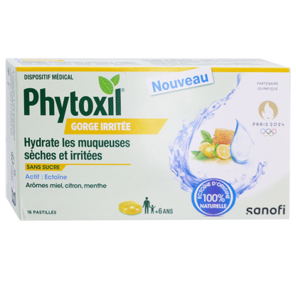Ne pas prendre plus de 10 pastilles par jour.Les enfants de moins de 6 ans ne doivent pas utiliser Phytoxil® Pastille Gorge Irritée en raison du risque d’étouffement. Tenir hors de la vue et de la portée des enfants. Ne pas utiliser en cas de traumatismes persistants, par exemple après une intervention chirurgicale ou des lésions buccales. Ne pas utiliser en cas d’hypersensibilité à l’Ectoïne ou à l’un des autres composants de la pastille. Ne pas utiliser les pastilles en position allongée, par exemple à l’heure du coucher, en raison du risque d’étouffement. Ne pas utiliser de pastilles provenant de plaquettes thermoformées endommagées ou perforées. Si des réactions allergiques surviennent, l’utilisation de Phytoxil Pastille Gorge irritée doit être immédiatement interrompue.