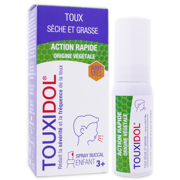 TOUXIDOL TOUX SÈCHE ET GRASSE GOÛT MIEL SPRAY BUCCAL ENFANT 15ML est disponible en vente en ligne à prix discount sur Pharmashopdiscount.