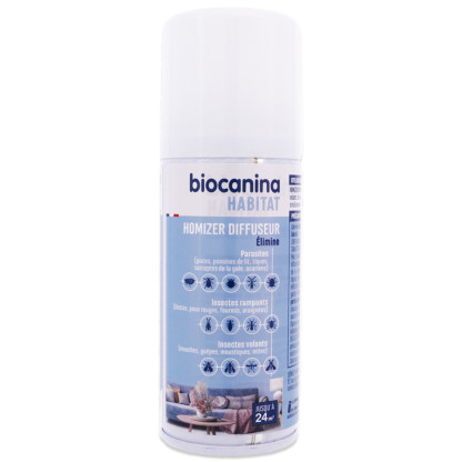 BIOCANINA HOMIZER DIFFUSEUR 100ML est en vente en ligne sur le site de votre parapharmacie à prix discount, conçu pour éliminer efficacement les parasites, insectes rampants et volants dans votre intérieur.