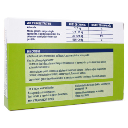 Administrer 1 comprimé par 35 kg de poids corporel.