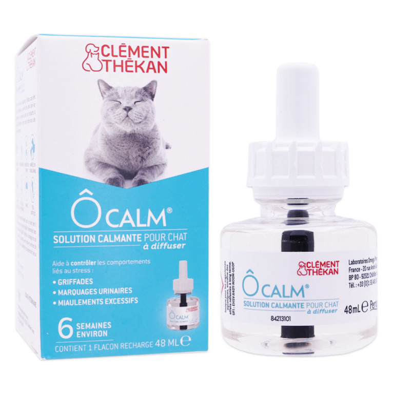CLEMENT THEKAN O CALM CHAT SOLUTION CALMANTE 48ML : profitez d'une ambiance apaisante pour votre compagnon félin grâce à cette recharge adapté au diffuseur électrique O CALM en vente en ligne, sur le site de votre parapharmacie à prix discount. Cette solution calmante est idéale pour réduire le stress et l'anxiété de votre chat dans son environnement.