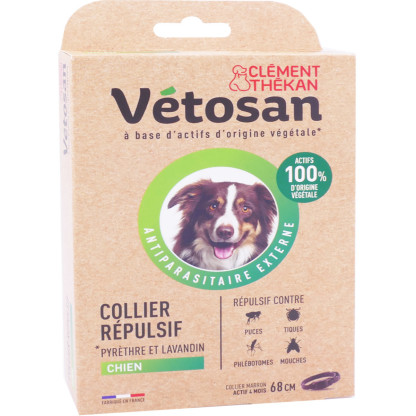 I Collier Répulsif VETOSAN discount de CLEMENT THEKAN, l’antiparasitaire naturel dans votre parapharmacie en ligne à prix discount, pour traiter de l’infestation des parasites sur l’animal. Collier de 68cm.