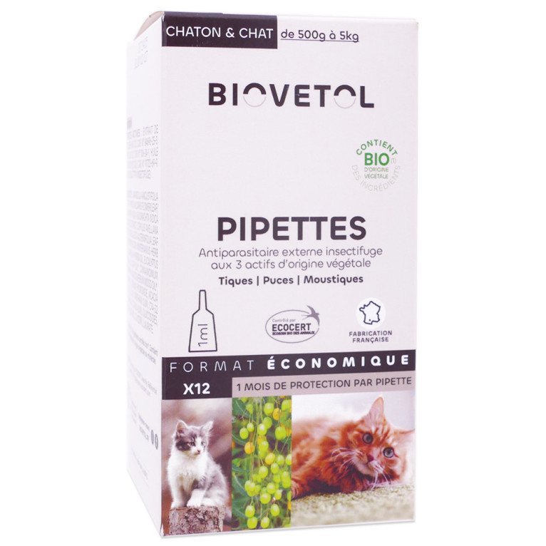 BIOVETOL BIO ANTIPARASITAIRE PIPETTES CHATON / CHAT 12X1ML est disponible en vente en ligne à prix discount sur Pharmashopdiscount.