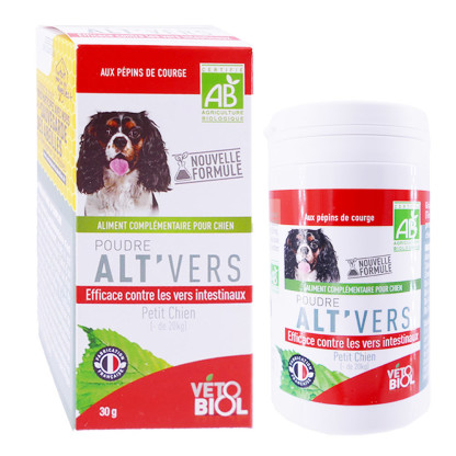 VETOBIOL BIO POUDRE ALT'VERS PETIT CHIEN 30G est en vente en ligne sur le site de votre parapharmacie à prix discount. Pour chien de - de 20kg
