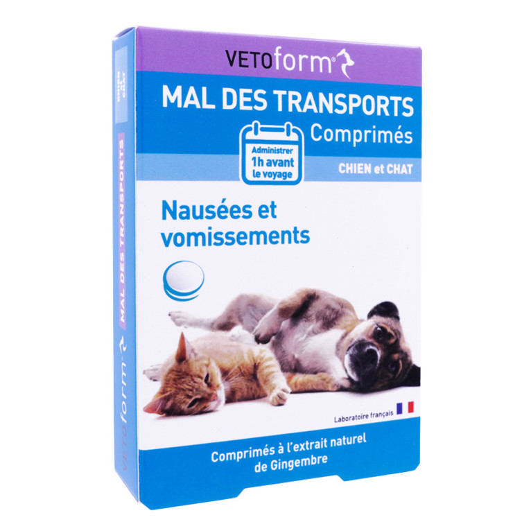 Ce produit, fabriqué par Vetoform, est un aliment complémentaire spécialement conçu pour aider les chiens et les chats à mieux supporter les trajets en voiture, en avion ou en bateau.