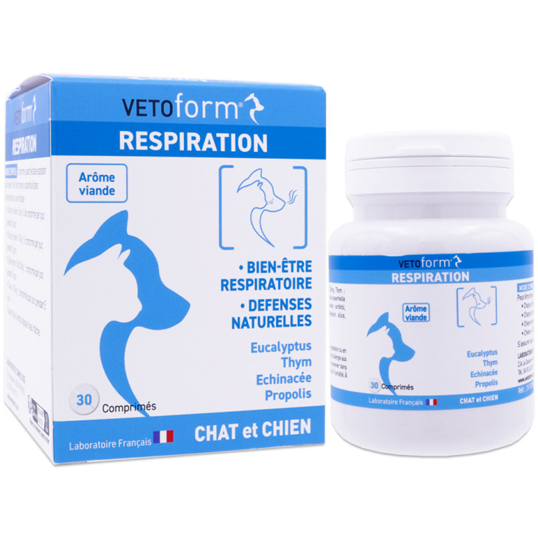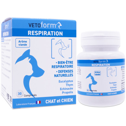 VETOFORM RESPIRATION CHAT ET CHIEN 30 COMPRIMÉS est disponible en vente en ligne sur le site de votre parapharmacie à prix discount.