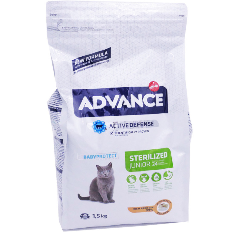 ACTIVE DEFENSE STERILIZEE JUNIOR discount d’Advance, l’alimentation recommandée pour les chatons stérilisés de moins de 24 mois, dans votre parapharmacie en ligne à prix discount.