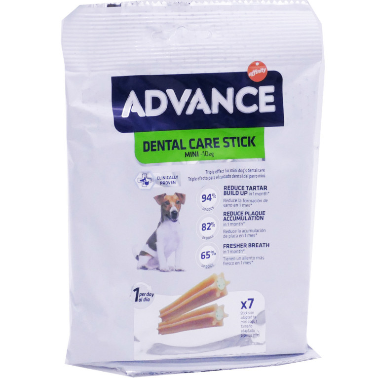 DENTAL CARE STICK MINI discount d’Advance, des friandises à mâcher indiqué en cas de gingivite, tartre ou mauvaise haleine du chien de moins de 10kg, dans votre parapharmacie en ligne à prix discount.