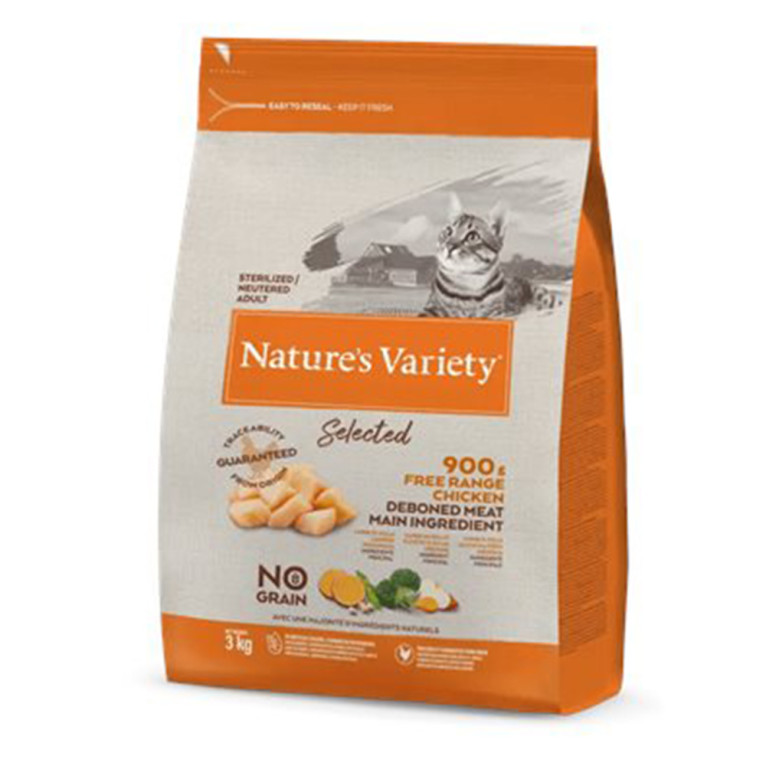 Selected No Grain Poulet discount de NATURE’S VARIETY, la santé animale au naturel dans votre parapharmacie en ligne à prix discount, pour un aliment complet délicieux sans céréales ajoutées pour le plus grand plaisir des chats ! Pour chats adultes stérilisés
