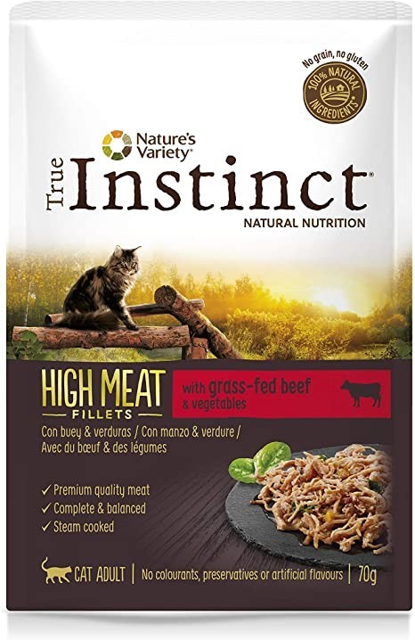 True Instinct High Meat Filet Bœuf discount de NATURE’S VARIETY, la santé animale au naturel dans votre parapharmacie en ligne à prix discount, pour de délicieux filets râpés pour le plus grand plaisir des chats ! Pour chats adultes