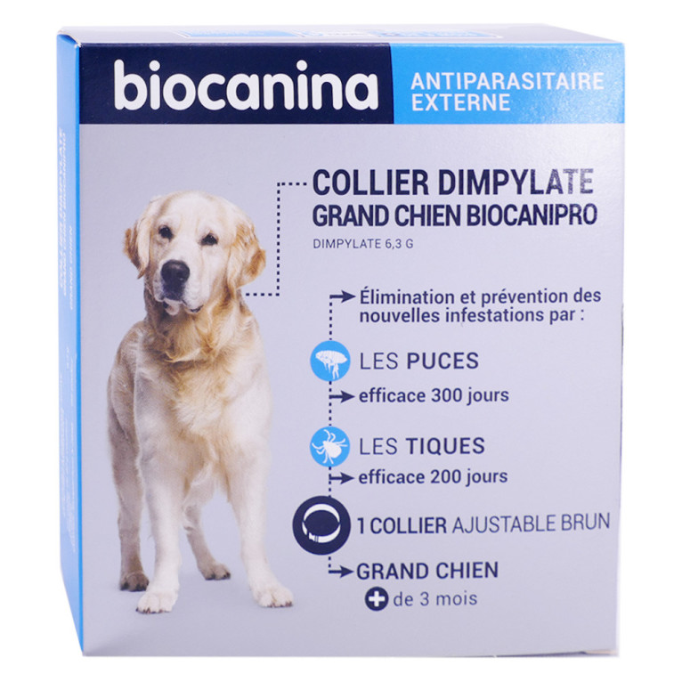 Protégez votre chien contre les parasites externes avec le collier antiparasitaire externe grand chien de Biocanina, disponible sur notre site à prix discount.