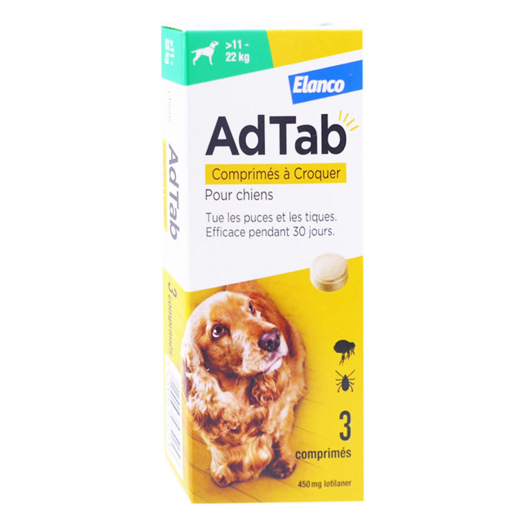 ELANCO ADTAB ANTPARASITAIRE 450MG CHIEN 11-22KG 3 COMPRIMES