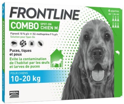 FRONTLINE Combo chien discount 10-20 kg pipettes, l’efficacité redoutable dans votre parapharmacie en ligne à prix discount, pour éliminer les puces et les tiques et stopper l’infestation de l’habitat.