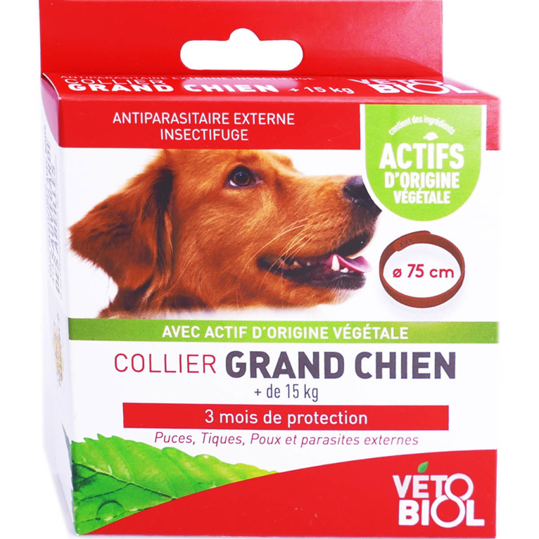 Vétobiol Collier Grand Chien 1 Collier est un collier insectifuge qui permet de lutter contre les puces, tiques, moustiques, aoûtats et poux. Il est adapté aux chiens de plus de 15 kg. A prix discount dans votre parapharmacie discount.