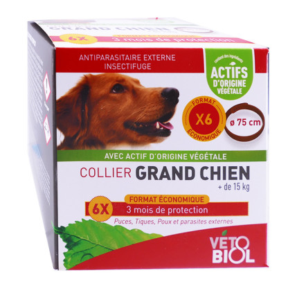 VETOBIOL ANTIPARASITAIRE COLLIER GRAND CHIEN 75CM X6