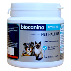 Net haleine pour chats et chiens de BIOCANINA, la poudre appétente pour éliminer la mauvaise haleine. Voie orale.