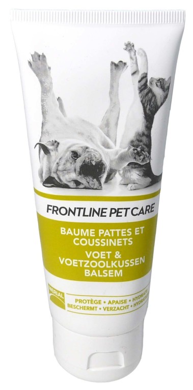 Le laboratoire FRONTLINE conçoit des produits et soins vétérinaires pour le bien-être des animaux de compagnie : traitement anti-puce, anti-tique, vermifuges…). Baume Pattes et coussinets FRONTLINE PET CARE est un soin à base d’huile d’héliantus, d’oxyde de zinc et de glycérine. Il va protéger les coussinets des chiens et des chats en formant une barrière protectrice pour lutter contre les plaies causées par la neige, le sable ou d’autres causes pouvant être irritants pour leurs pattes, hydrater et apaiser.