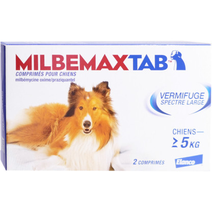 MILBEMAX Tab de NOVARTIS, le vermifuge pour lutter contre l’infestation des vers plats et ronds pour les chiens de plus de 5kg, indiqué également pour les femelles en période de lactation et de gestation.