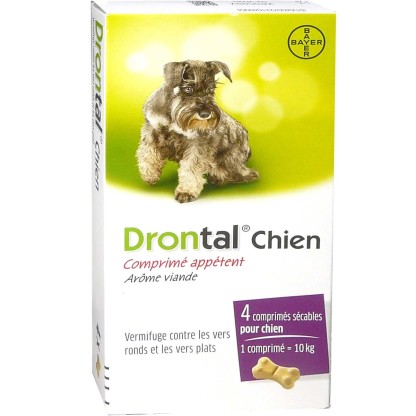 Drontal de BAYER discount, le vermifuge pour lutter contre l’infestation des vers plats et ronds dans votre parapharmacie en ligne à prix discount, pour les chiens de plus de 2kg, même pour les femelles en période de gestation à partir de 5 semaines et de lactation.