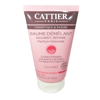 Le laboratoire CATTIER développe des produits pour le soin et le bien-être de toute la famille à base d’ingrédients naturels bio et d’argiles sans silicone, sans paraben, sans produits chimiques. Le baume démêlant de CATTIER, à la texture fondante et onctueuse, composé de gel d’aloe vera bio, d’huiles bio (pracaxi, tournesol et soja), d’Amisol Trio TM, et de beurre de karité bio, est spécialement conçu pour nourrir, lisser les écailles et gainer le cheveu, réparer la barrière protectrice du cuir chevelu, revitaliser le cheveu, protéger des agressions extérieures, adoucir et faciliter le démêlage des cheveux sans les alourdir. Après le soin, les cheveux délicatement parfumés à la grenade sont doux et soyeux. Sans silicone.